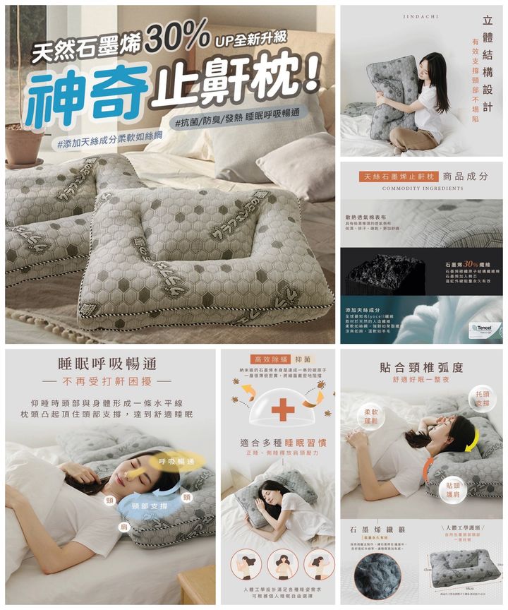 [台灣團購 天絲石墨烯快眠止鼾枕(單顆)]