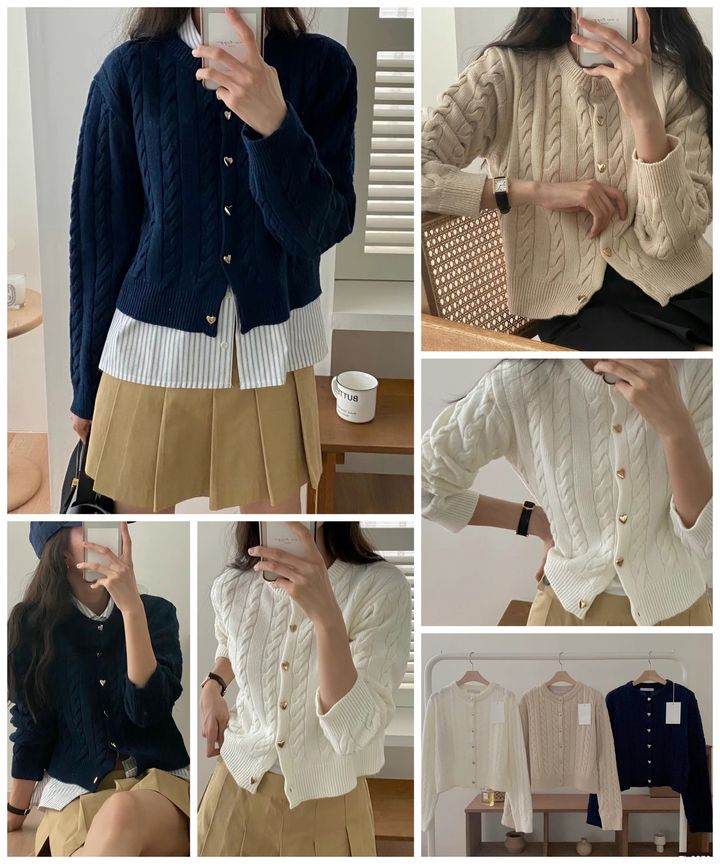[韓國 小愛心金扣羊毛麻花外套]