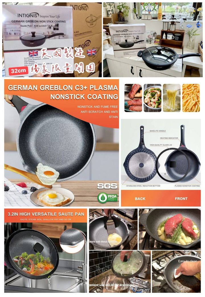 ❣️材質:複合金+德國GREBLON不沾塗層、電木把手、強化玻璃蓋