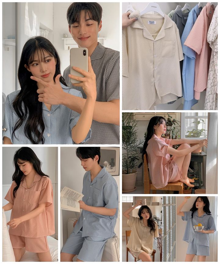 [韓國 Juuneedu 格紋睡衣套裝男女同款]
