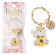 [日本製 天然貝殼繡球招財貓鑰匙圈]