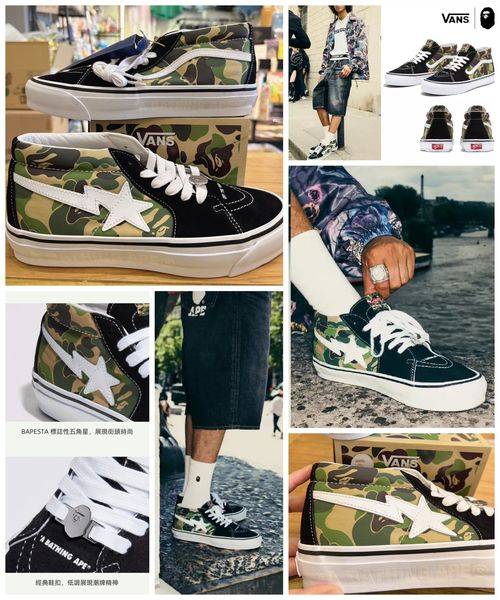 [日本 聯名限量款 A BATHING APE® x VANS SK8-MID迷彩綠色滑板鞋男款休閒鞋]