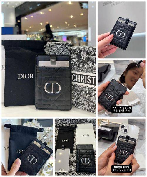 [韓國 限量贈品 DIOR 高級菱格小羊皮卡包+隨身鏡]