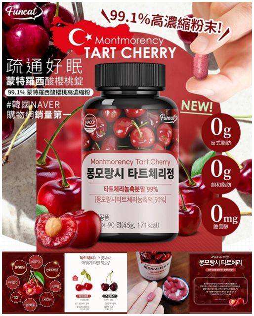 [韓國 Funeat 蒙特羅西酸櫻桃錠500mg (90粒入/罐)]