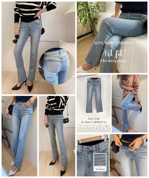 [韓國 玩美修身水洗淺藍靴型牛仔褲]