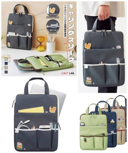 [日本 LIHIT LAB可愛貓咪站立拉鍊手提電腦收納袋]