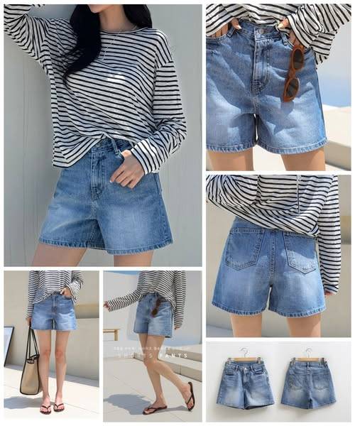 [韓國 簡約高腰水洗牛仔短褲]