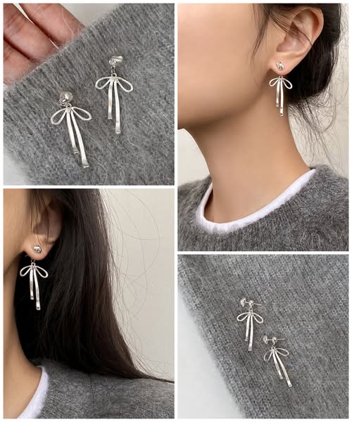 [韓國 垂墜舞動蝴蝶結925銀針耳環]