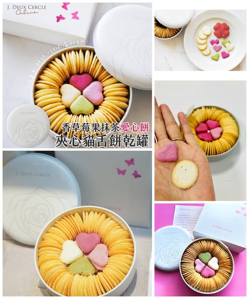 這款 香草莓果抹茶愛心夾心貓舌餅乾罐
