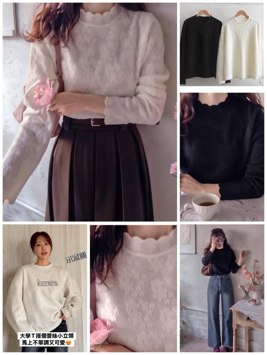 領口露出蕾絲小立領、變化大不同