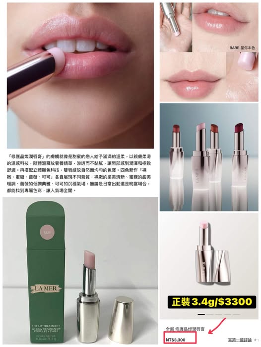 [韓國 限時折扣 LAMER 海洋拉娜修護晶燦潤唇膏Bare-中樣]