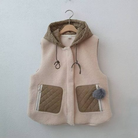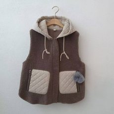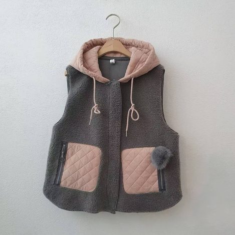 [22月韓國連線菱格拼接毛球連帽羊羔絨背心]