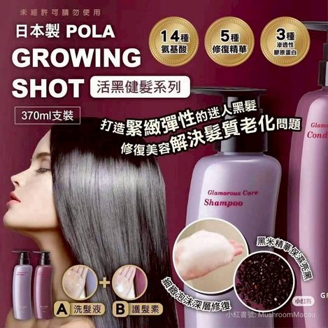 POLA新款防脫洗髮水370ml范冰冰同款 #緊緻頭皮,減緩白髮生成,預防脫髮,明亮黑髮。以護膚的方式發力頭髮,清潔頭皮的同時,通過高滲透性美容液,讓頭髮黑亮有彈性,一次即可改善頭髮無彈力易坍塌現象,使頭髮具有蓬鬆感。採用紫花風鈴樹提取精華,改善頭髮稀少,脫髮現象,配合黑米精華改善白髮現象,讓頭髮看起來更年輕。