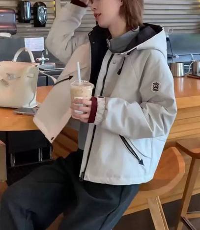 2. 細節滿滿:袖子上有一個精緻的車標小Logo,加上拉鍊處的撞色設計,質感直逼專櫃品牌,不是那種廉價的素面外套喔!