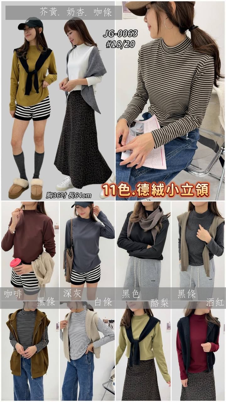 • 條紋控必收:咖條、黑條、白條(條紋是萬年不敗款,穿在大衣裡露出一點點就很好看)。