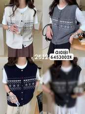 [1月幾何圖騰彩色扣針織背心]