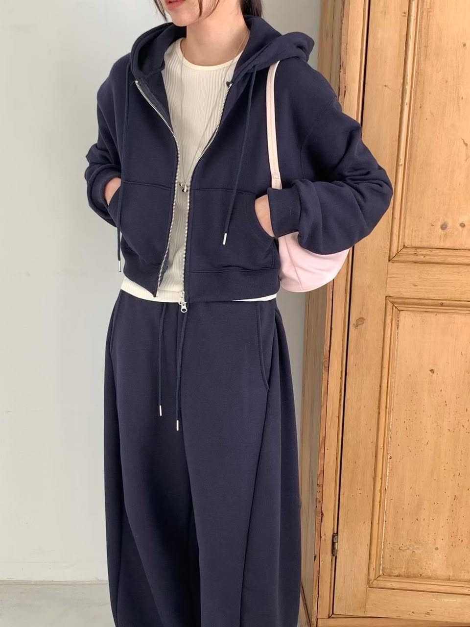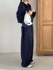 [ 韓國日常感短版連帽外套寬褲套裝(4色)]
