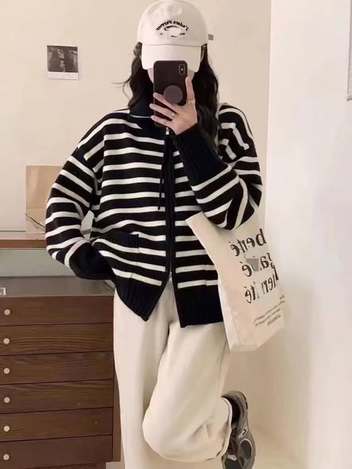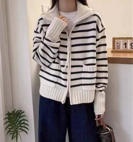 [1368 經典條紋雙向拉鍊針織外套] NT$450現貨供質感破100 規格:(黑/杏) [隨性一穿,就是法式慵懶感] 經典的橫條紋永遠是衣櫃裡的常棵樹。這款 1368# 外套最特別的是它的「雙向拉鍊」設計,拉上去是俐落的高領暖和感,拉下來就是隨性的翻領風格。 寬寬大大的落肩版型,不挑身材,裡面隨便搭件白T就很有層次感。雙口袋的設計不僅實用,也增加了一點可愛的學院氣息。這就是美玲平常最愛的那種:不用想怎麼搭,穿上就能出門的高品質單品。 +4 查看洞察報告 584個貼文觸及人數